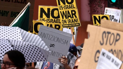 On the Druze side, Farah Taki, originally from Sweida, said her aunts there were displaced by the recent violence and she had come from Chicago to protest al-Sharaa’s visit.