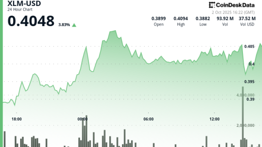 Bitcoin, too, has recovered from Asian session lows near $121,000 to trade near $122,750 at press time. The cryptocurrency is still down 1.3% on a 24-hour basis. The CoinDesk 20 Index is down over 3% at 4,229 points. Gold tokens, XAUT and PAXG, trade higher, taking cues from the spot gold prices. Meanwhile, BNB, CAKE and HASH traded higher on a 24-hour basis.