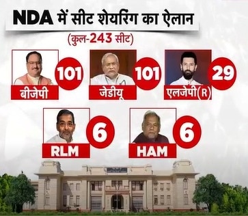 बिहार की राजनीति में चुनावी माहौल पहले से ही गर्म है. इस बीच रविवार को कई दिनों के मंथन के बाद सत्तारूढ़ एनडीए ने 243 सदस्यीय विधानसभा के चुनावों के लिए सीट बंटवारे का फार्मूला पेश किया, जिसमें मुख्यमंत्री नीतीश कुमार की जेडी(यू) और भाजपा ने 101-101 सीटों पर चुनाव लड़ने का फैसला किया और बाकी सीटें छोटे सहयोगियों के लिए छोड़ दीं.