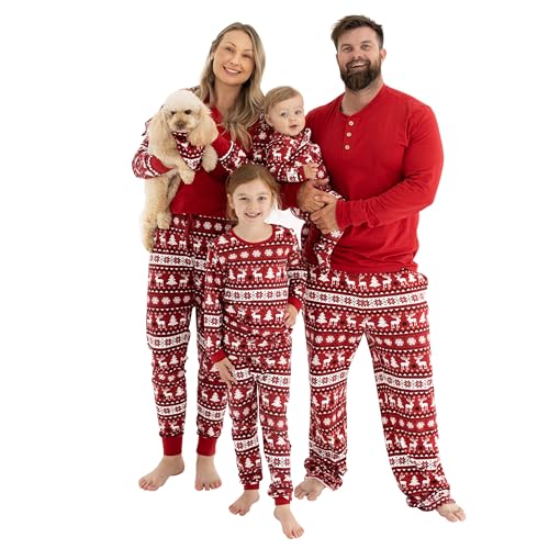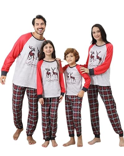 Does it get any cuter than this? Treat the fam to this matching holiday pyjamas set, featuring a cute reindeer top and cozy red plaid pants. Perfect for Christmas morning, winter lounging, and creating picture-perfect holiday memories together.